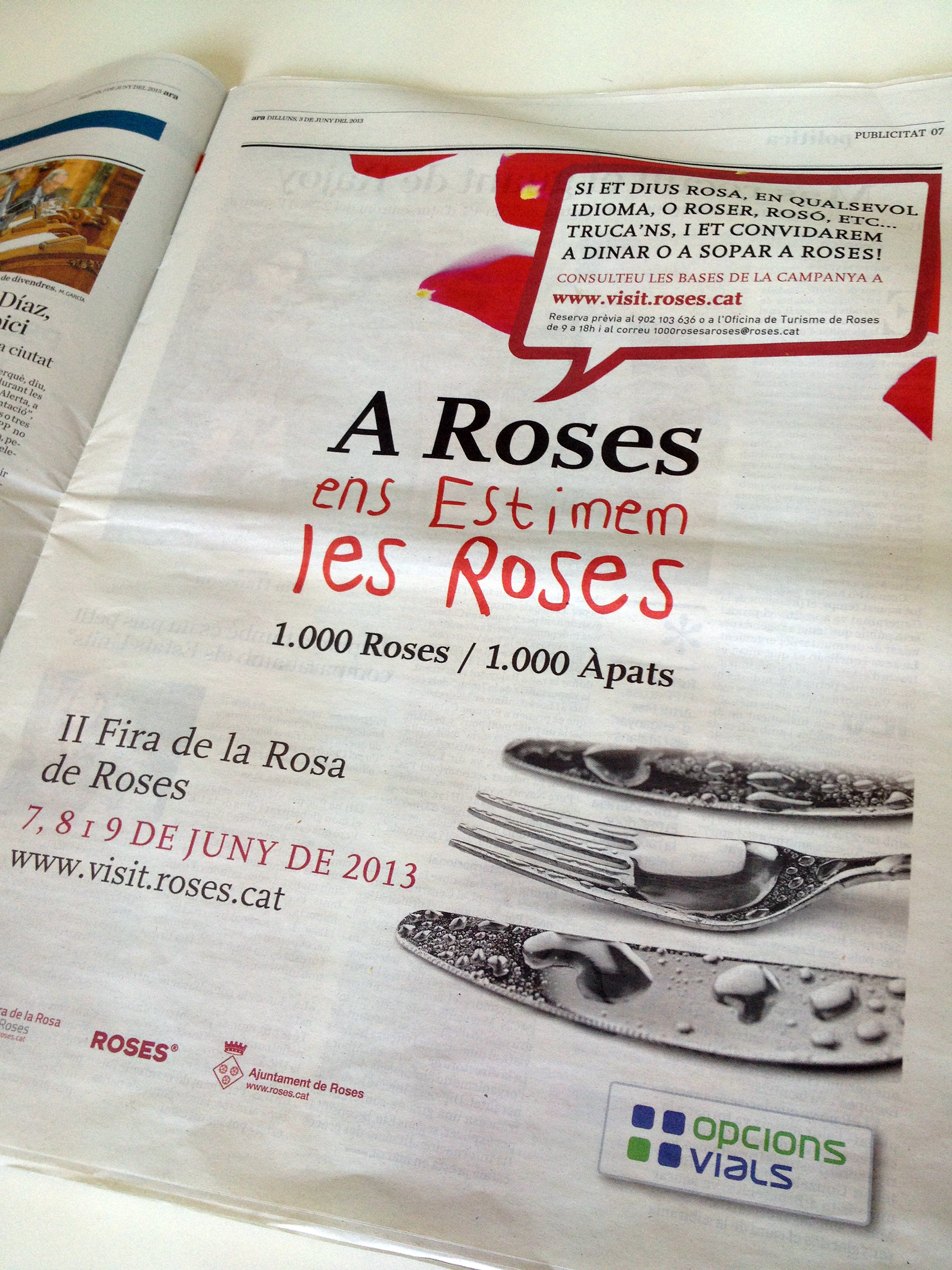 Realització de claim de campanya i adaptacions publicitàries per a prensa per a l'ajuntament de Roses.