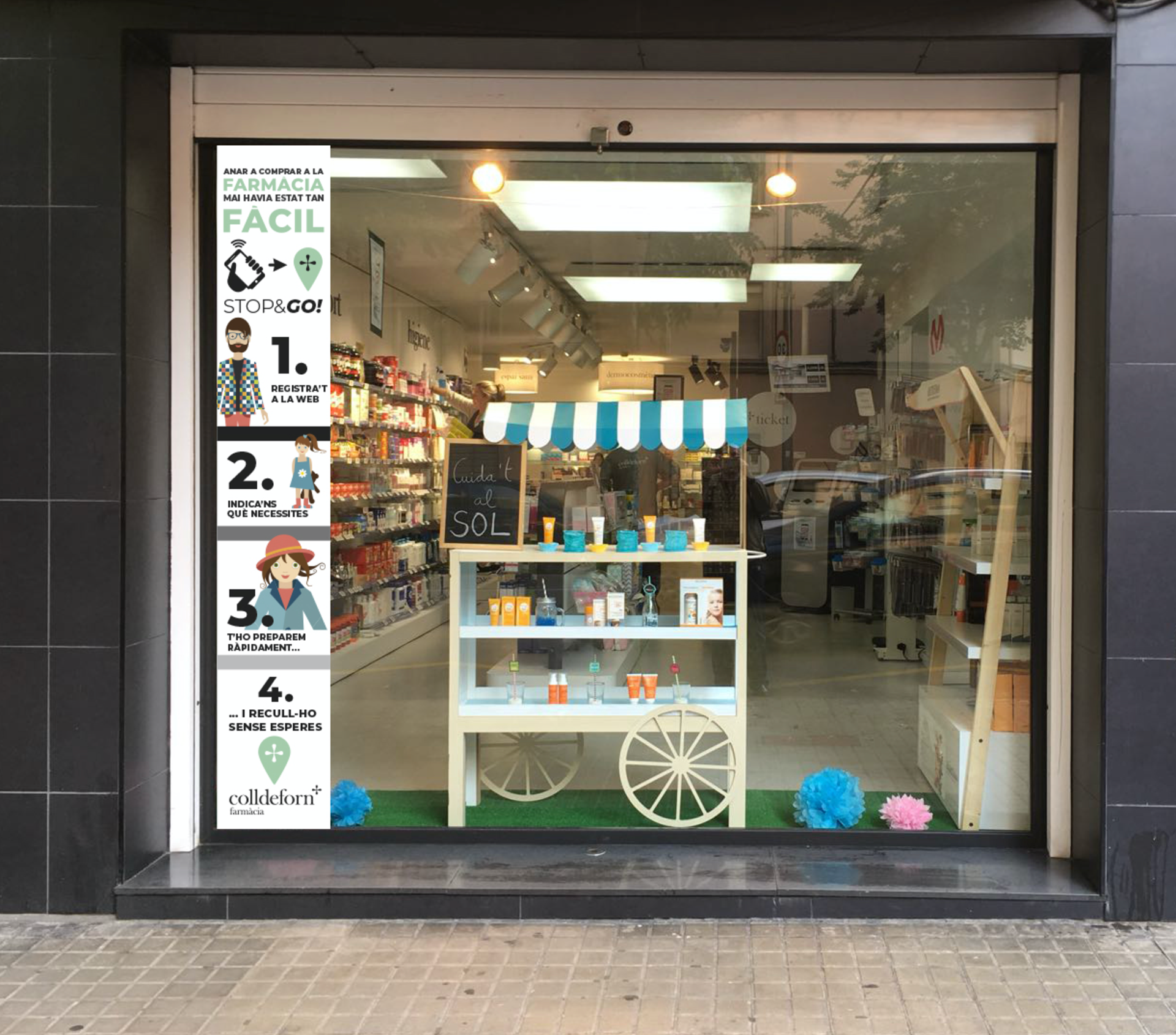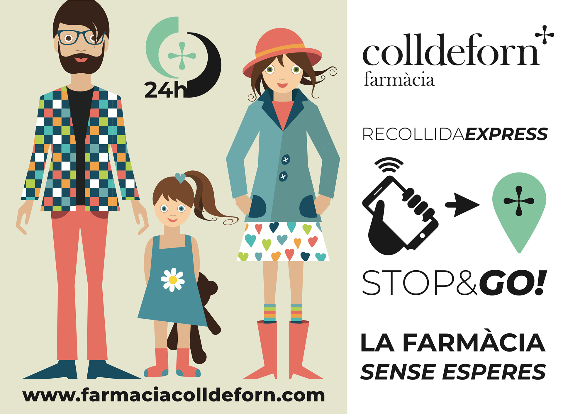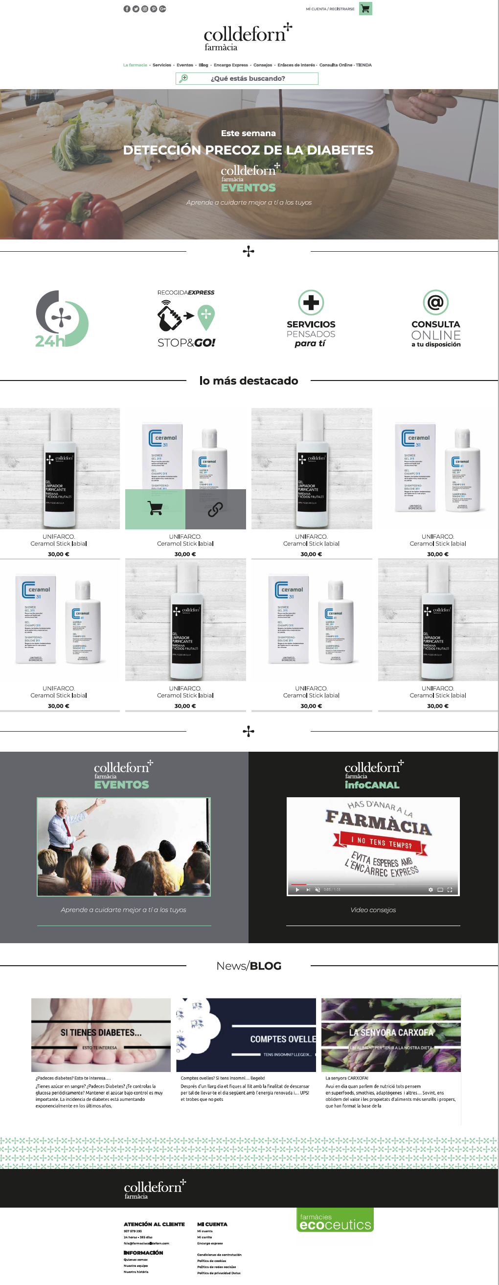 Disseny gràfic per a botiga online de la farmàcia Colldeforn de Mataró. Treball en cooperació amb PublicObjectiu i beewing. Grafismes per a campanya publicitària en autobusos 2018 i 2019