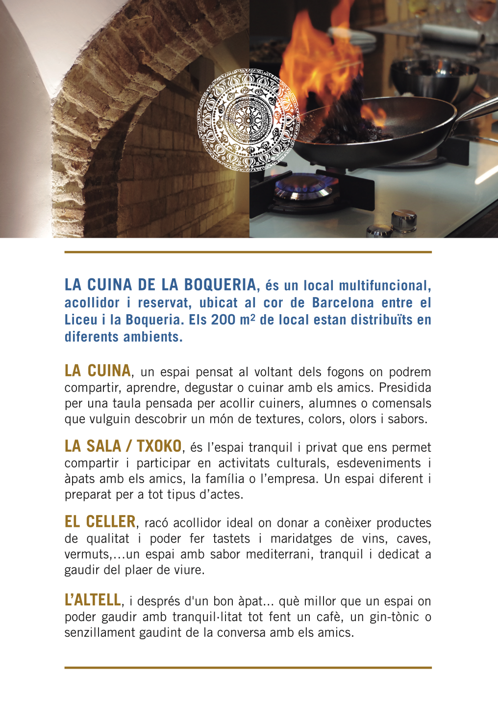Marca per a local multifuncional de l'àmbit gastronòmic ideal per events a la zona del mercat de la Boqueria de Barcelona.