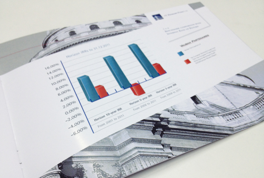 Realització de marca per a fons de inversió tipus Privaty Equity. PE PRIMARY FUND LTD. (París). Realització de Brochure de presentación per a clients del fons.